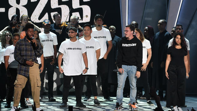 Kevin Winter/Getty ImagesOne of the most touching moments of this year’s MTV VMAs was when Alessia Cara, Khalid and Logic all teamed up to perform their suicide awareness song “1-800-273-8255,” while surrounded by attempt survivors, and those who’d lost loved ones to suicide. But amazingly, Khalid says he’d never actually met Alessia until after the three performed together on stage that night.