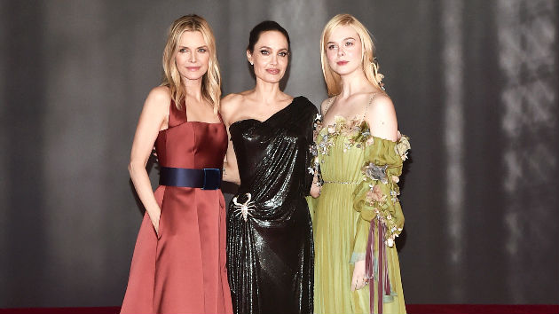L-R - Pfieffer, Jolie, Fanning — Photo by Alberto E. Rodriguez/Getty Images for Disney(LOS ANGELES) — Oscar winner Angelina Jolie, and her co-stars including Michelle Pfieffer, and Elle Fanning had a magical evening in Los Angeles, at the world premiere of Maleficent: Mistress of Evil.