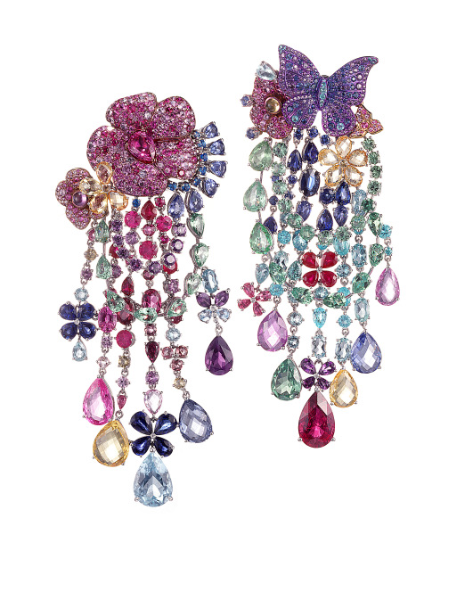 Rihanna already has given us a sneak peek at some of the bling: at the Grammy Awards, she wore multicolored floral chandelier earrings and a marquise-cut diamond ring. In March, when she appeared on the cover of Harper’s Bazaar, she wore “transformable” diamond earrings.
